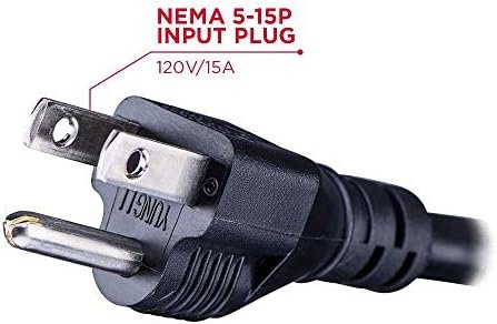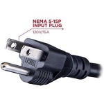 8 NEMA 5-15R OUTLETS: Four battery backup & surge protected outlets; Four surge protected outlets; INPUT: NEMA 5-15P plug with five foot power cord
