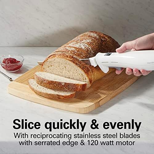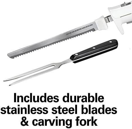 SLICE QUICKLY & EVENLY: The electric carving knife’s powerful 120 watt motor and reciprocating stainless steel blades with serrated edge give you the precision and control to cut quickly and evenly every time you slice.