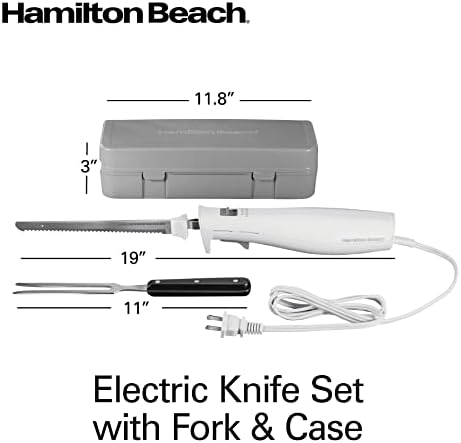 Hamilton Beach Electric Knife Set for Carving Meats, Poultry, Bread, Crafting Foam & More, Reciprocating Serrated Stainless Steel Blades, Ergonomic Design Storage Case + Fork Included, 5 Foot Cord