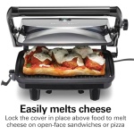 TOP LID LOCK: Lock panini press lid to create an easy bruschetta or open-face sandwiches.