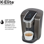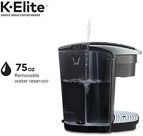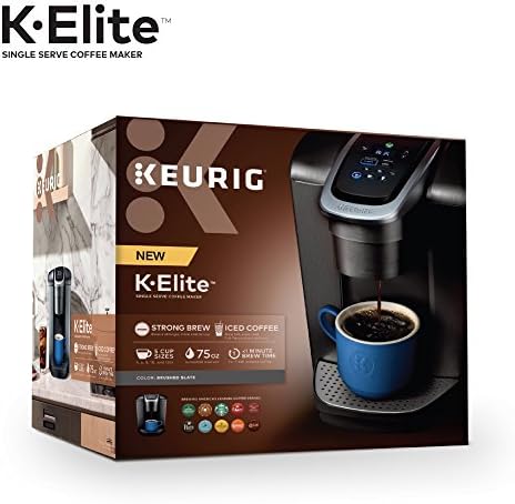 The Keurig K-Elite single serve brewer blends a premium Brushed Slate finish and programmable features to deliver both modern design and the ultimate in beverage customization. With a striking brushed finish and metal details, it’s a stylish addition to any kitchen. The Keurig K-Elite single serve coffee maker features Strong Brew for when you want to brew a bolder cup of coffee, and an Iced button to brew hot over ice for a refreshing, full-flavored iced coffee. It features five brew sizes, so you can brew your favorite coffee, tea, hot cocoa, or iced beverage at the touch of a button. Choose from hundreds of delicious varieties of K-Cup pods, or brew your own ground coffee using the Universal My K-Cup Reusable Coffee Filter (sold separately). The K-Elite brewer offers programmable features like auto on and temperature control, as well as providing hot water on demand for instant soups and oatmeal, and the large 75oz removable water reservoir lets you brew 8 cups between refills.