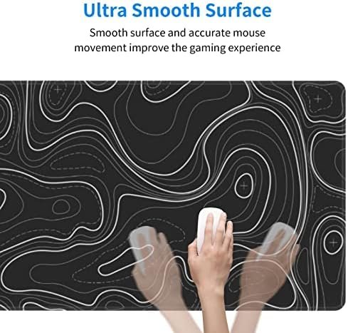 Large Gaming Mouse Pad Black Topographic Contour Mouse Pad with Stitched Edges