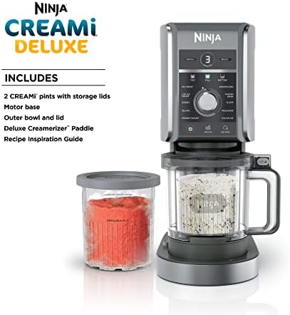 WHAT’S INCLUDED: Motor Base with Dual-Drive Motors, XL Professional Creamerizer Paddle, (2) 24 oz. CREAMi Deluxe Pints with Storage Lids, Outer Bowl and Lid to house pint while processing.