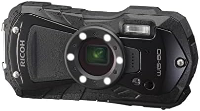 ” 1. Heavy-duty construction assuring underwater shooting down to 14 meters, for up to two hours The solid, airtight body common to the WG-80 is not only waterproof down to a depth of 14 meters for up to two hours of continuous operation (equivalent to IPX 8 or JIS Class 8), but is also shockproof against falls from a height of 1.6 meters,* dustproof (equivalent to IPX 6 or JIS Class 6), freeze-proof to temperatures as low as -10°C, and crushproof against weights up to 100kgf (kilogram force). ** Thanks to this heavy-duty construction, the cameras perform superbly and dependably even in harsh, demanding outdoor conditions. * Measured under RICOH IMAGING-original testing standards — from a height of 1.6 meters, onto a surface of 5cm-thick plywood — conforming to Method 516.5-Shock of the MIL-Standard 810F. ** Measured under RICOH IMAGING-original testing standards. 2. Exceptional image quality The WG-80 comes equipped with a back-illuminated CMOS image sensor, which assures excellent high-sensitivity and low-noise characteristics and high-speed readout of image data signals. Coupled with a high-performance imaging engine, this image sensor delivers a top sensitivity of ISO 6400 and super-high-resolution images with approximately 16.0 effective megapixels. These models also provide advanced image processing functions, made possible by the latest super-resolution technology, to assure sharp, clear, high-resolution images. They even offer such innovative features as Handheld Night Snap mode, which automatically captures several images of the same nighttime scene and produces a single, blur-free composite image from them. 3. Six Macro Lights to assist close-up shooting, with various functions Ideally positioned around the circumference of the lens barrel for macro shooting, six LED Macro Lights allow the WG-80 to provide bright, uniform illumination on a subject when the Digital Microscope mode is selected. Providing the maximum illumination intensity almost twice that of its predecessor and a five-step intensity adjustment function, this six-light unit enables the photographer to effortlessly optimize the close-range flash photography based on the subject or creative intention. In order to minimize camera shake and subject shake, the Instant Illumination Enhance function allows for the use of a higher shutter speed by automatically raising the discharge level of the Macro Lights at the moment of shutter release. The Macro Lights also provide other useful functions, such as a Self-Portrait Assist mode, which uses the blink of an LED lamp to check if the subject’s face has been safely captured within the picture frame, and the LED Lighting mode, which uses the Macro Lights as a lighting device in the dark. 4. Underwater shooting mode Specifically designed for underwater photography, the Underwater and Underwater Movie shooting modes are programmed to optimize color and contrast, based on the data of images actually captured under the water. These modes deliver sharp, true-to-life images by enhancing shades of red which are lost in underwater photography, while effectively compensating for the loss of contrast caused by the diffusion of light in water. In the Underwater mode, the Flash Off + Flash On option allows the user to consecutively capture two images with a single shutter release — one without flash and another with flash. 3 5. 5X optical zoom lens with a 28mm wide-angle coverage The WG-80 feature a high-performance, five-times optical zoom lens with a focal-length coverage from 5mm to 25mm (equivalent to approx. 28mm to 140mm in the 35mm format) to accommodate a wide range of scenes and subjects, including sweeping landscapes. They also provide other convenient shooting functions, such as a macro mode to capture dramatic close-up images from a minimum focusing distance of a mere one centimeter; an Intelligent Zoom function to extend the zoom range to approximately 36 times (equivalent to 1008mm in the 35mm format) without compromising image quality, for superior telephoto photography; and an interval shooting mode, which comes in handy for fixed-point observation. 6. Full HD movie recording for extended shooting of high-quality movies The WG-80 provides Full HD movie recording employing the H.264 recording format. Users can capture high-quality, extended movie clips (1920 x 1080 pixels, 16:9 proportions) at a frame rate of 30 frames per second. To add some creative touches to movie recording, they also feature a high-speed camera function*** for slow-motion playback of captured movie clips, and an interval movie function. A micro-HDMI terminal (Type D) is also provided on the camera body for simultaneous output of Full HD movie clips and sound to external audio-visual devices. *** When this function is selected, the recorded size is fixed at 1280 x 720 pixels. 7. Triple anti-shake protection to prevent blurred images in all applications (1) Pixel Track SR mechanism When recording still images, this advanced shake-reduction mechanism effectively compensates for camera shake by digitally processing affected images. (2) Digital SR mode When the camera detects low-lighting conditions in still-image shooting, this mode automatically raises the sensitivity up to as high as ISO 6400, making it possible to use a higher shutter speed and effectively minimize the adverse effect of camera shake and subject shake when dealing with poor lighting conditions. (3) Movie SR mode During movie recording, this mode effectively compensates for the misalignment of images caused by camera shake through the use of exclusive software to produce beautiful, blur-free movie clips. 8. 2.7-inch LCD monitor with the Outdoor View Setting mode The WG-80 comes equipped with a 2.7-inch LCD monitor with horizontally extended 16:9 proportions and approximately 230,000 dots. The monitor’s AR (Anti-Reflection) coating minimizes annoying glare and reflections to assure a sharp, clear on-screen image even in the 