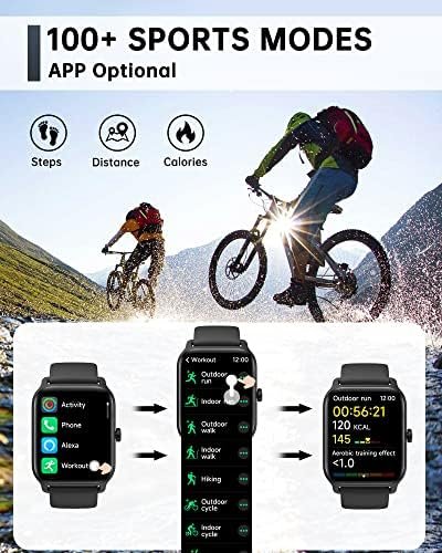 【100 Sports Modes & IP68 Waterproof】This watch comes with 100 sports modes, including running, cycling, swimming, dancing, football, skiing, and parkour, etc. Automatically record steps/distance/calories burned/exercise time. Make a daily exercise plan through the watch! The watch allows you to wash your hands or face while wearing it , and it can also be used in water up to 10m deep. * Please do not use it in sea water or high temperature environment, like bathing, sauna, hot spring water.