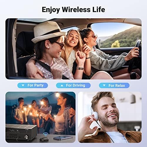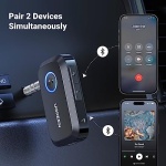 Dual Device Connection Supported: This aux to bluetooth supports connecting 2 devices simultaneously. You can easily switch devices for calls and music while driving, and change music with your friends at parties.